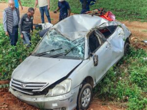 A grey toyota Allion was involved in a road accident on the Chisamba-Lusaka road