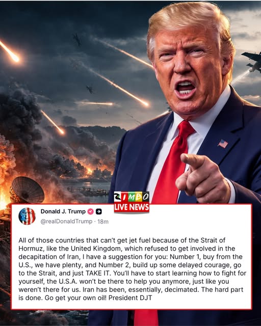 BREAKING NEWS President Donald Trump has issued a stark ultimatum to the United Kingdom and other nations currently facing jet fuel shortages linked to the Strait of Hormuz.